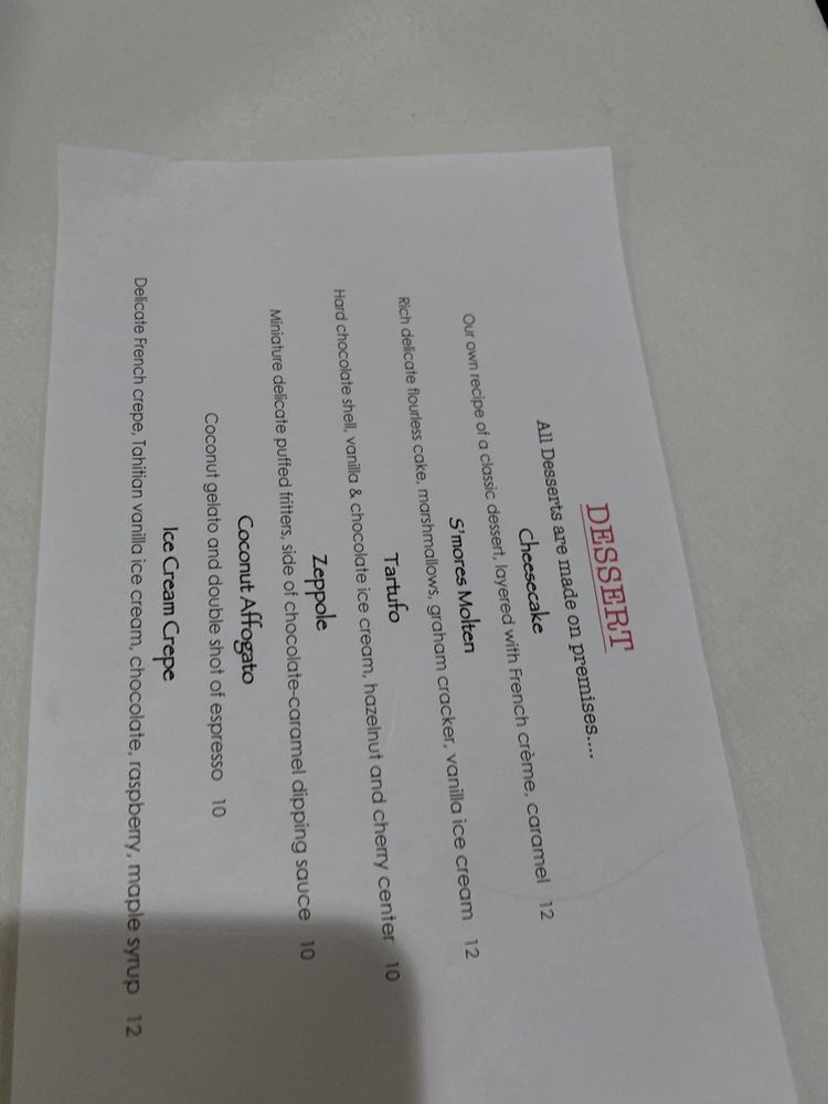 Rich, delicate mini cake, toasted marshmallow, graham cracker crumb, peanut butter chunk ice cream (served separate). Allergens: dairy, wheat.